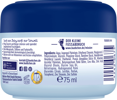 Bübchen მოვლითი კრემი ინტენსიურად კვებავს და ზრუნავს სახისა და სხეულის კანზე.